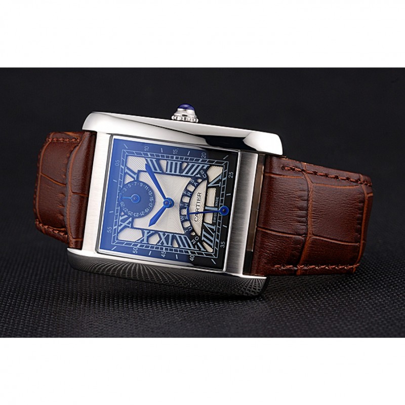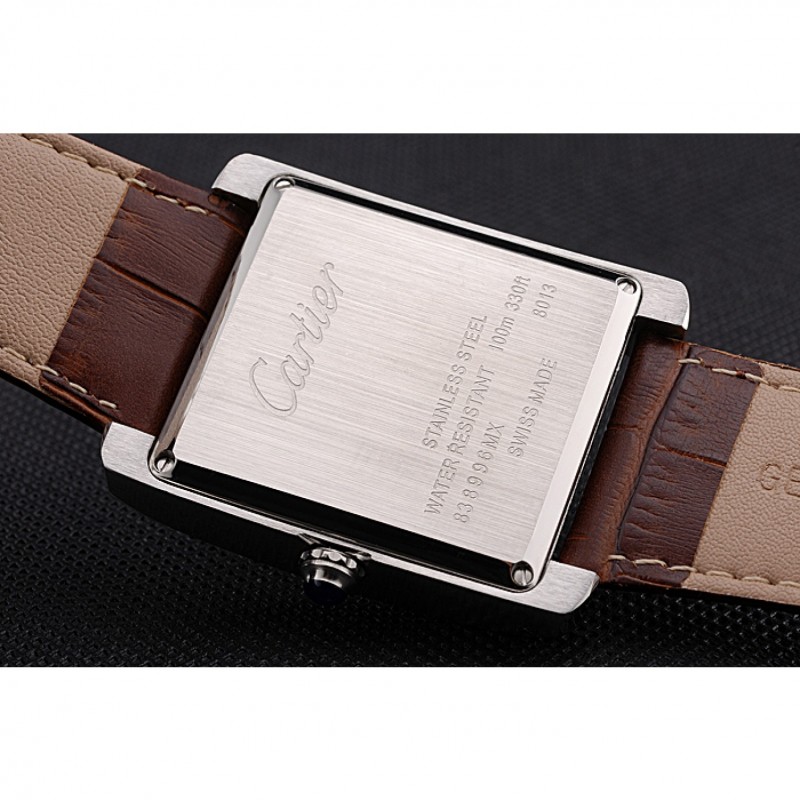 Cartier Tank Black And White Dial Stainless Steel Case Brown Leather Strap 622763 Replica Watches
