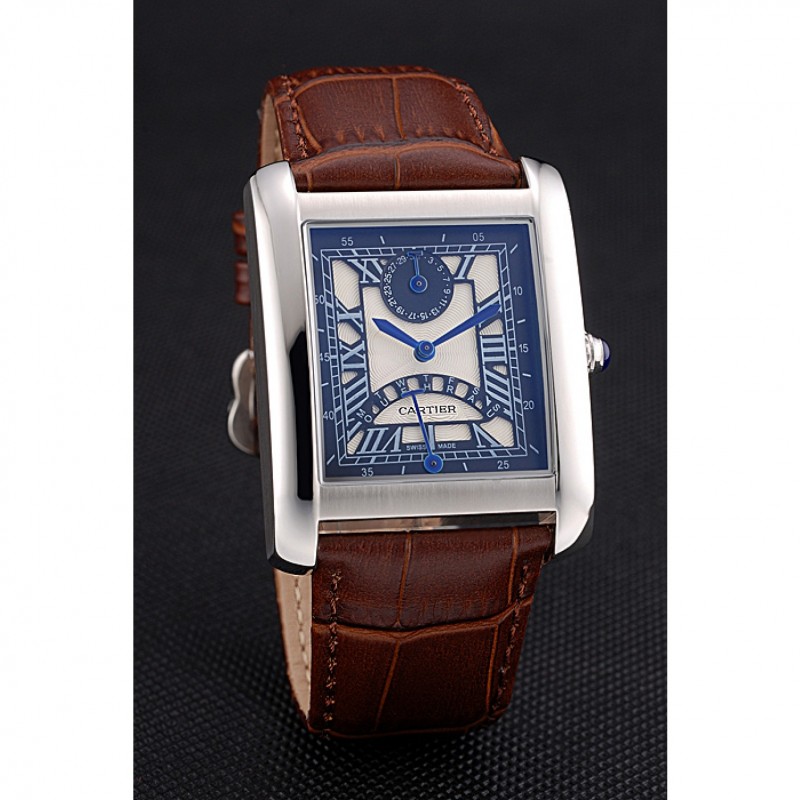 Cartier Tank Black And White Dial Stainless Steel Case Brown Leather Strap 622763 Replica Watches